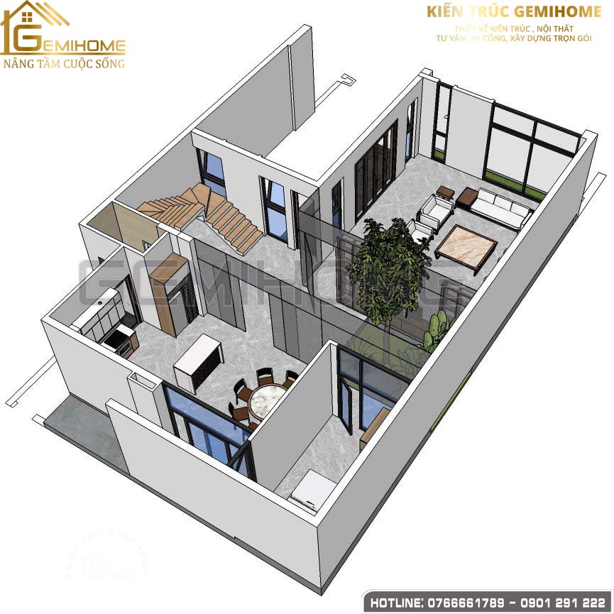 2. Bản vẽ 3D mẫu nhà phố hiện đại