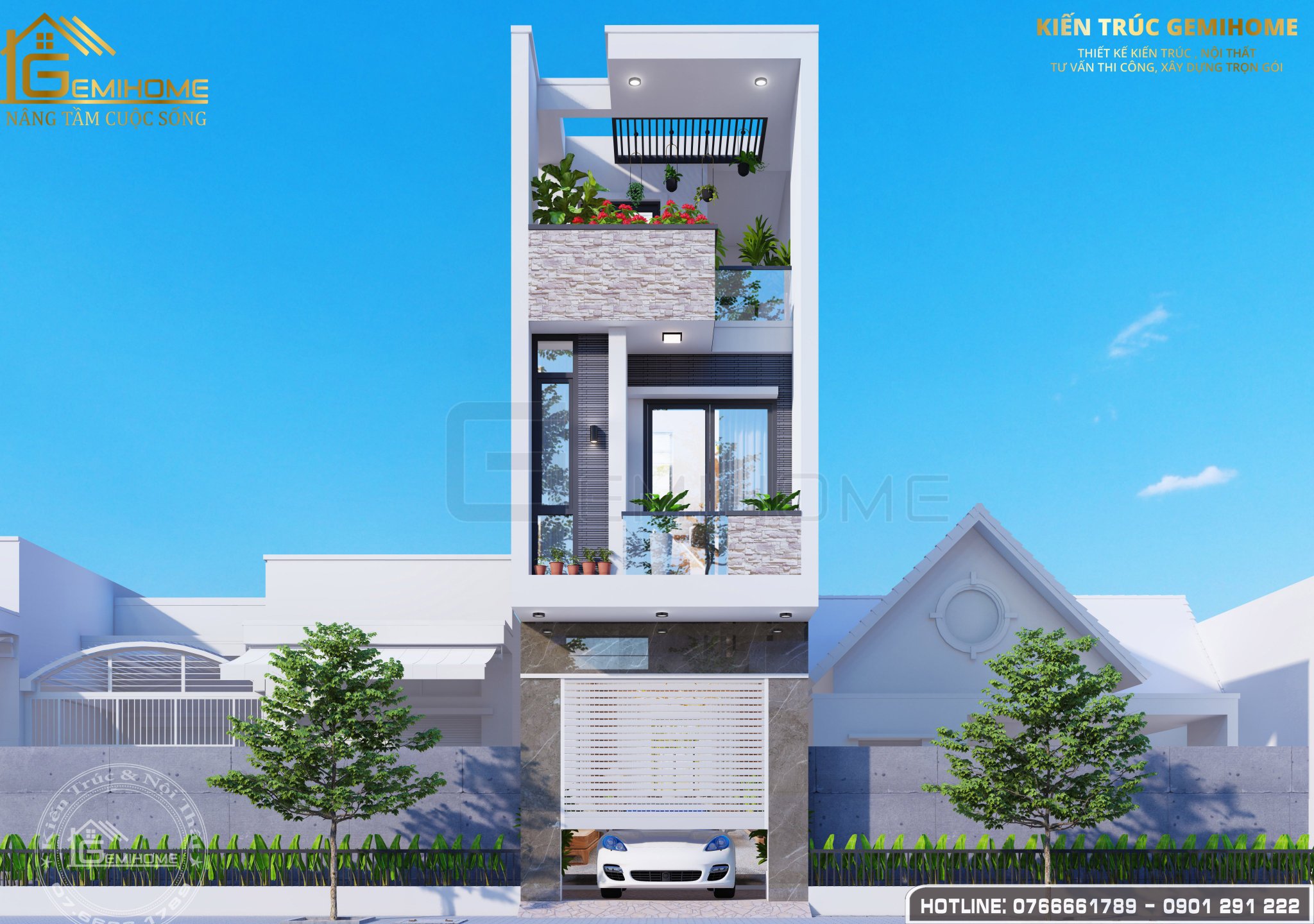 Nhà phố 3 tầng mặt tiền 5m phù hợp đối với những gia đình có 2 – 3 thế hệ cùng sinh sống. Sau đây, GEMIHOME xin giới thiệu mẫu mặt tiền nhà phố 5m 3 tầng của gia đình anh Bằng ở Thanh Hóa. Cùng chúng tôi tham khảo mẫu thiết kế sau đây để có cái nhìn tổng quan hơn về mẫu nhà phố 3 tầng mặt tiền 5m.