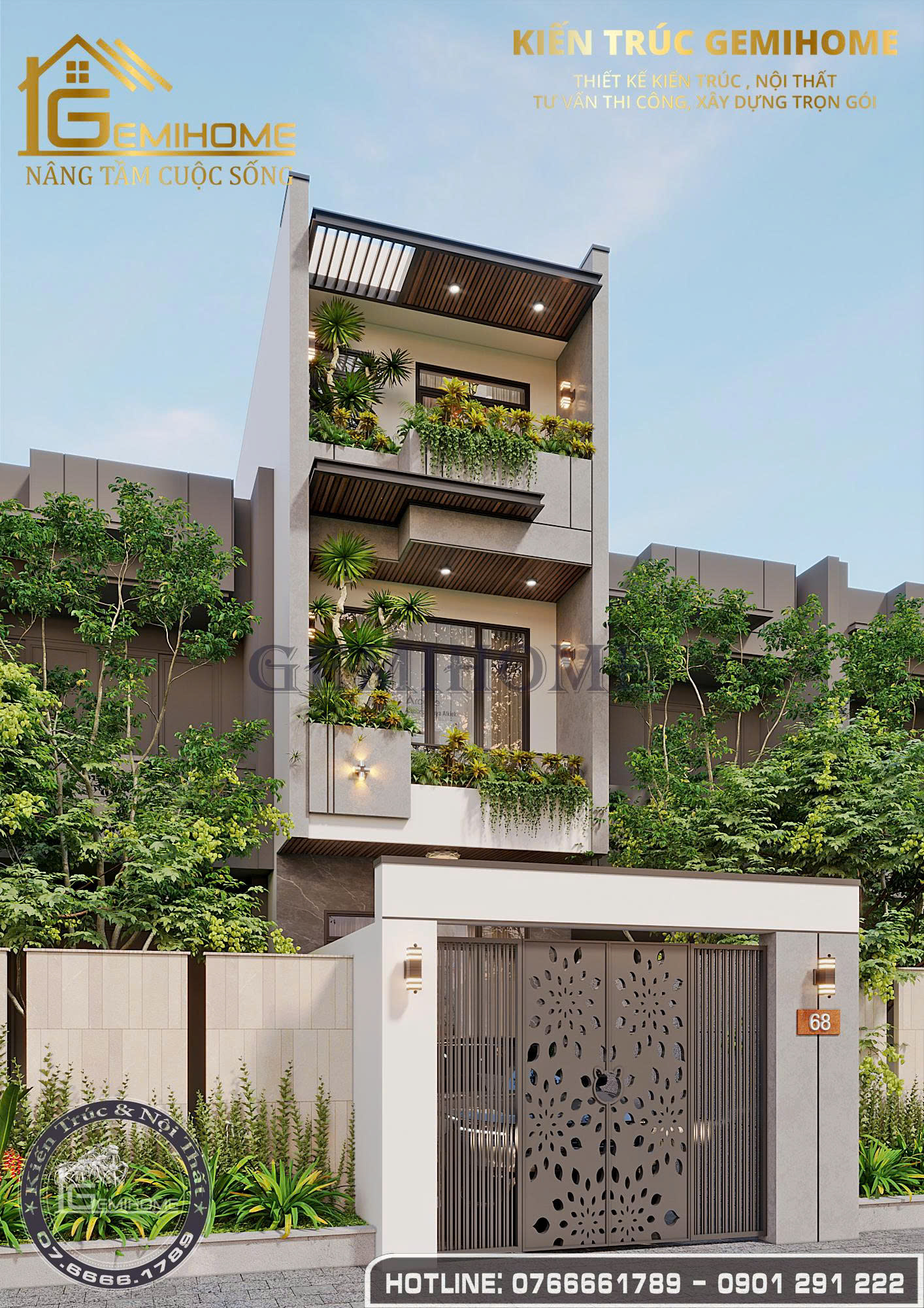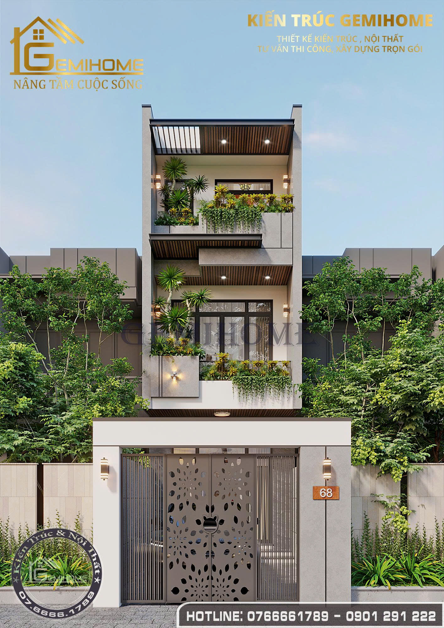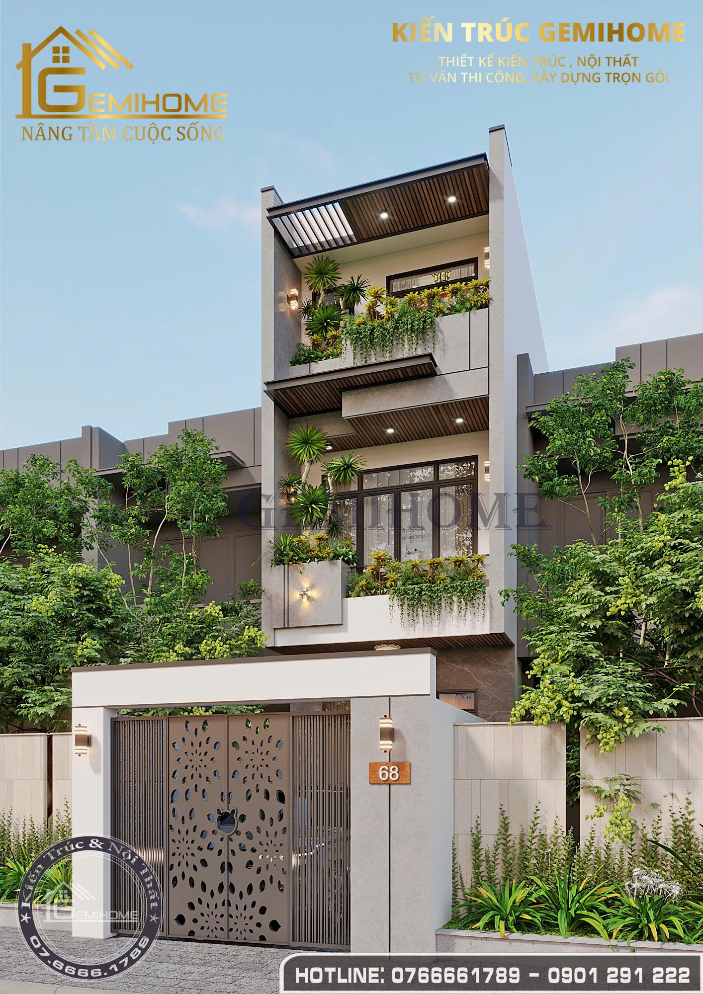 Nếu quý vị mong muốn sở hữu cho mình một mẫu thiết kế nhà ở đẹp như vậy, hãy liên hệ ngay theo số Hotline 0766661789 hoặc 0901.291.222 để được tư vấn và hỗ trợ tốt nhất.